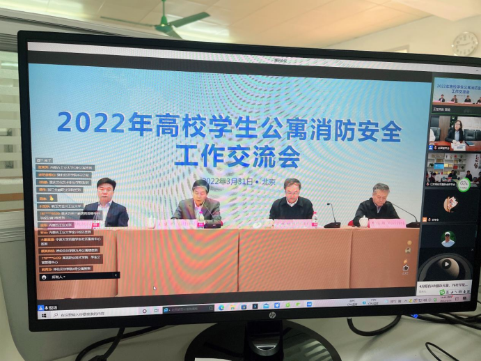3月31日下午,中国教育后勤协会召开了高校学生公寓2022年安全消防工作会议,公寓中心主任、副主任、办公室人员参加此次视频会议,同步收听观看。
