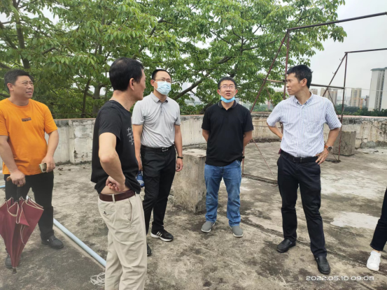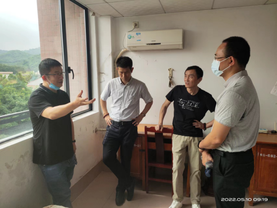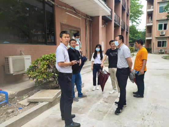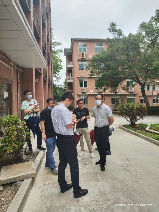 5月10日,为盘活学校资产,基建中心主任李津及相关科室科长、后勤处领导余泽浩、汤程荣,前往北校区第一招待所现场调研并制定出相应改造计划。公寓中心主任崔益波、古文理、王晓静介绍第一招待所目前楼龄及房间情况。