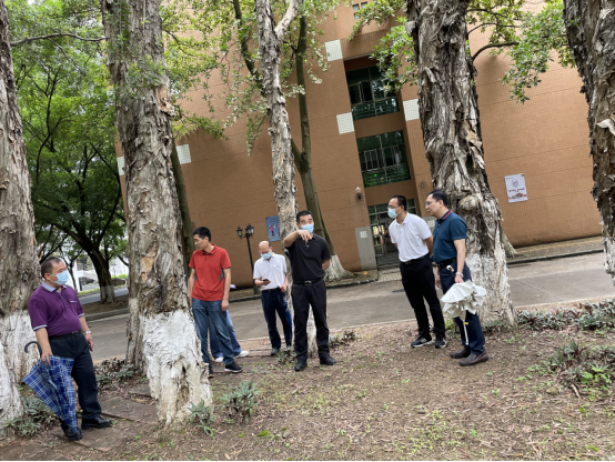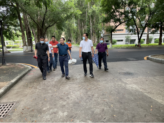 今天上午,刘海春副校长带队检查、指导北校区校园防汛工作,重点对学校西大门、一教和五教门口、六教网信中心数据库和学生第一饭堂前、云山学17栋地下室、体育公园靠近白云山体间、干训楼和第五招待所山体滑坡处进行专项防汛检查,同时开展北校区校园绿化工作调研、指导。后勤处领导余泽浩、吕坚强、杨思,及监管科科长冯文成、物业中心主任王吉亮等相关实体负责人陪同检查。