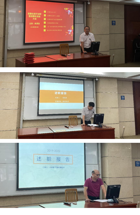 后勤处班子成员做个人述职,机关科长和实体正职负责人对各自工作做总结发言。
