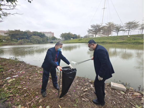 2023年1月3日,刘海春副校长亲临大学城校区一线培训指导河涌工作,刘校肯定了总务后勤部在2022年度的河涌治理工作取得的成绩,并对2023年的工作做出相关指示。同时刘校还组织后勤员工一起到河涌现场捡垃圾杂物,维护河涌环境。