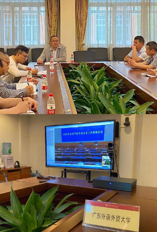 3月15日上午9时,2023年全省学校食品安全工作视频会议在省教育厅召开,我校在白云山校区行政楼第三会议室设立分会场,同步收听收看,总务后勤部余泽浩部长、植仲培副部长和饮食中心相关人员参加此次视频会议。